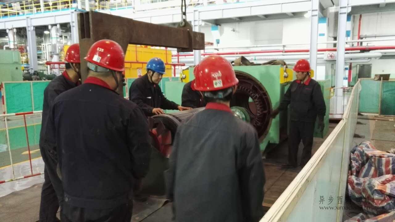 西安電機維修廠快訊:2018.6.28日應西安灞橋熱電有限公司要求,我公司派遣維修技術人員對22號C給水泵電機YKOS2700-2  2700KW 6KV電機,進行現場拆機,經故障診斷為定子燒包,應客戶要求結合施工情況對定子返廠大修。