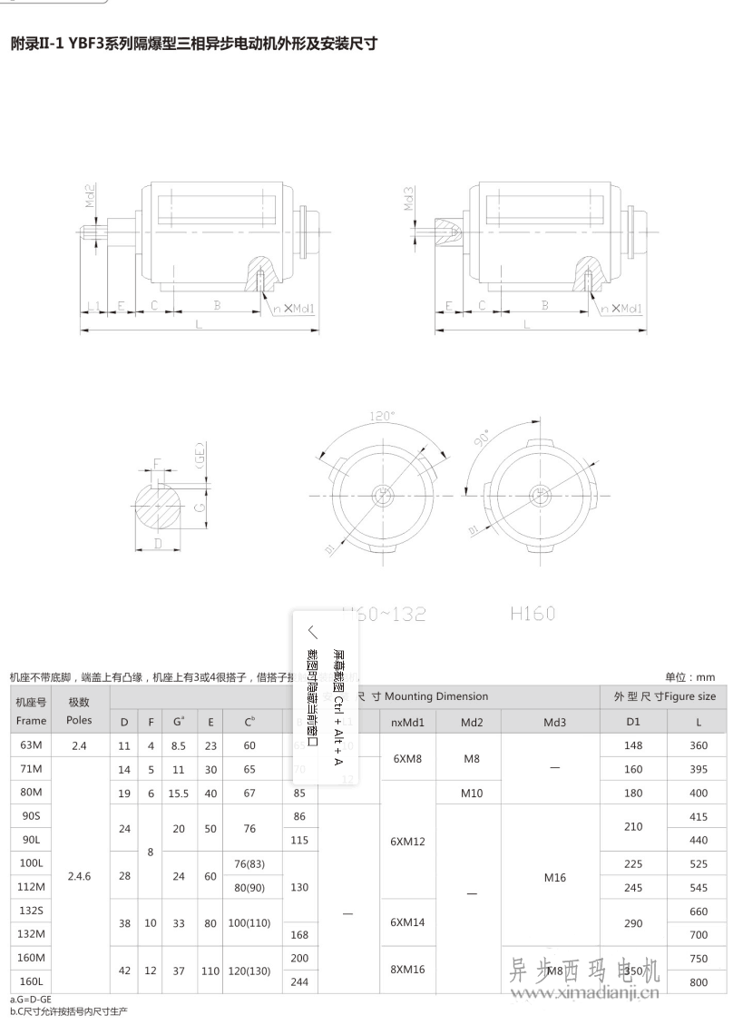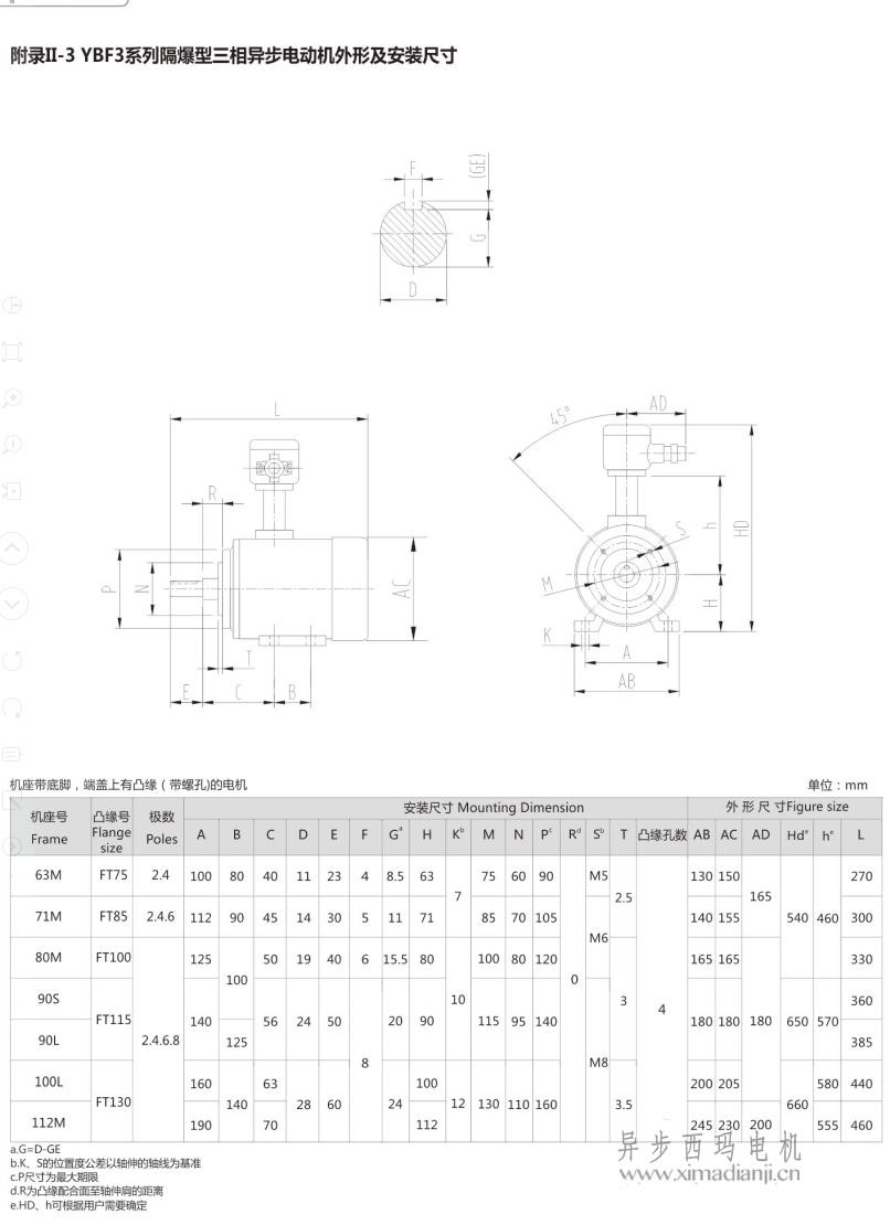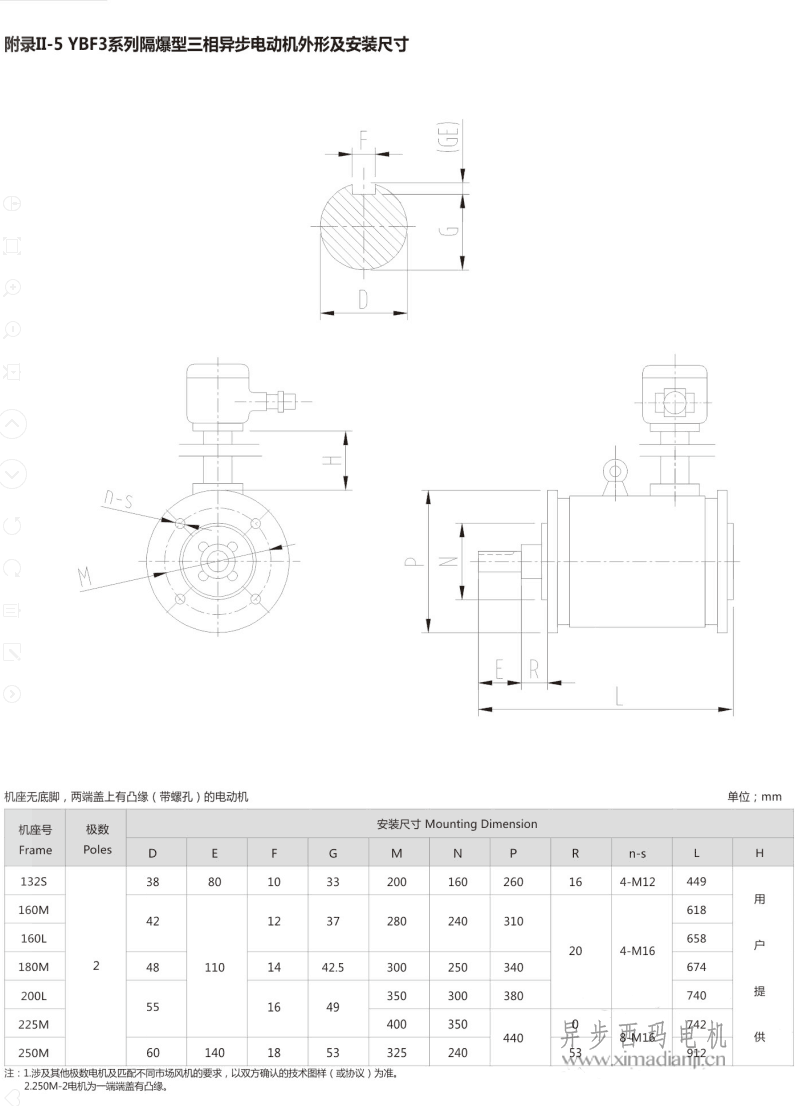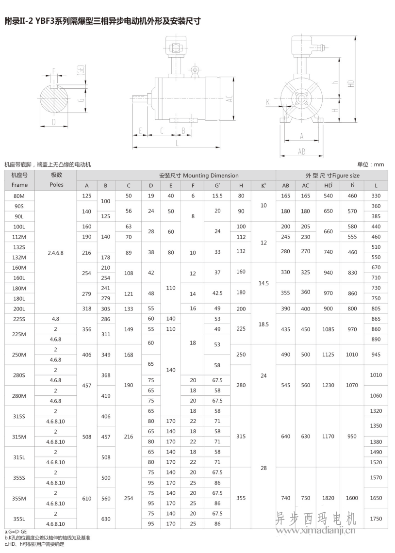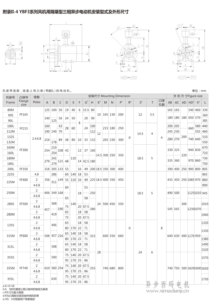 西瑪YBF3系列風機專用防爆電機安裝尺寸